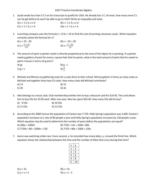 Read Online coordinate algebra eoct practice test Paperback BookBoon